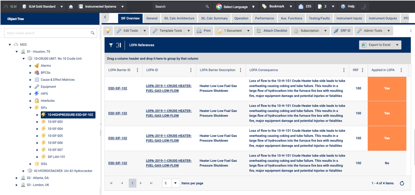 Model complete Safety Instrumented Functions alongside other Independent Protection Layers — including Alarms, BPCS safeguards, Fire & Gas systems, and Interlocks — with full architectural visibility and Safety Requirement Specification Documentation.