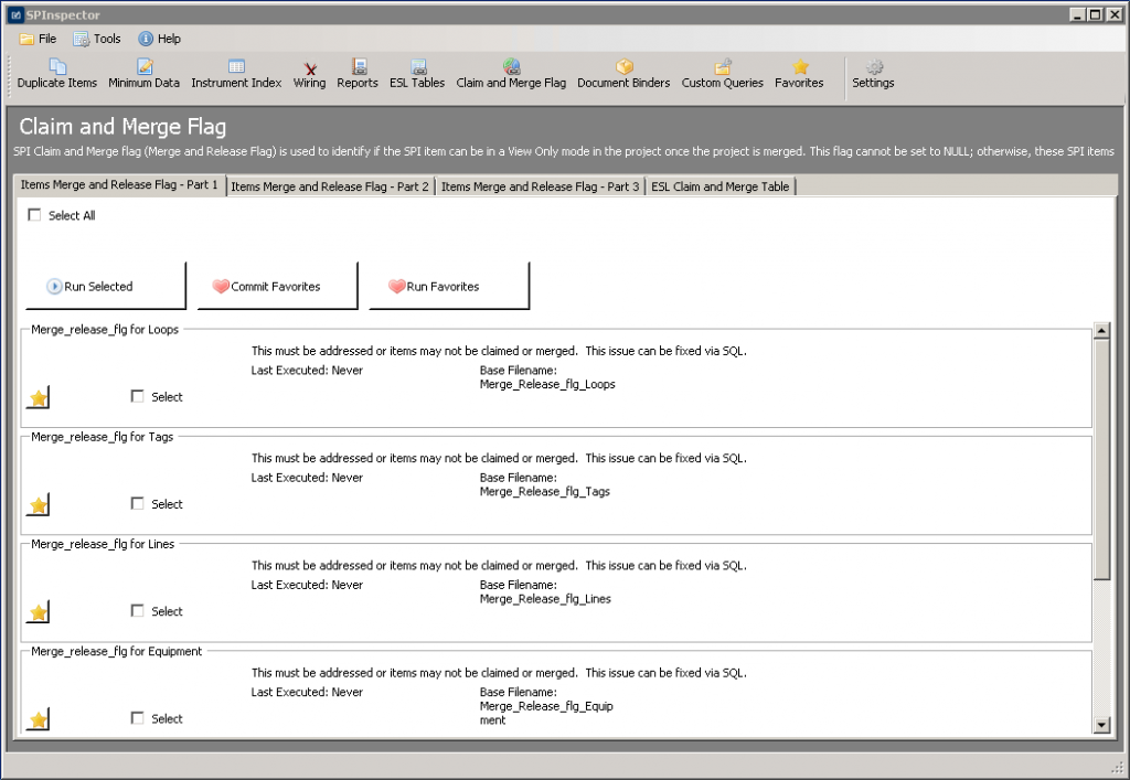 SPInspector quickly and easily conducts a full SPI database inspection with 271 queries. One-click access and organized pre-loaded inspections provide immediate results to your entire SPI database; saving your project time and money.