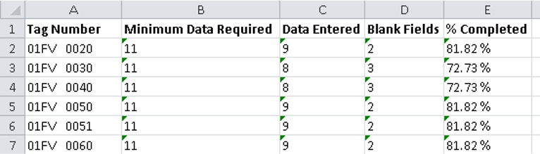 - Ability to provide a percent completion per instrument specification data (Selected fields or Entire instrument specification data).